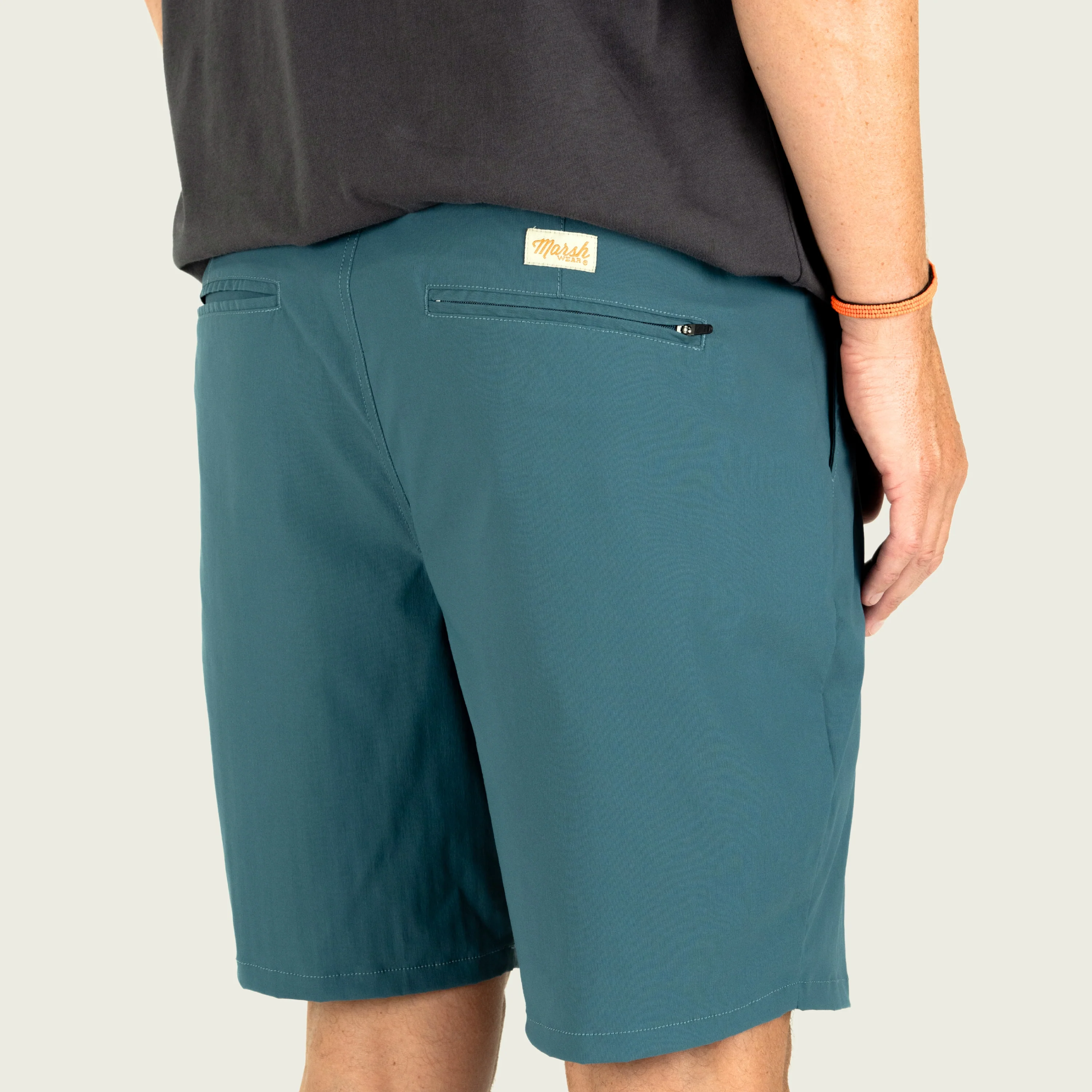 - Dual front pockets, zippered back pocket